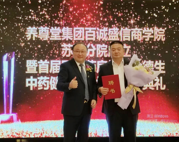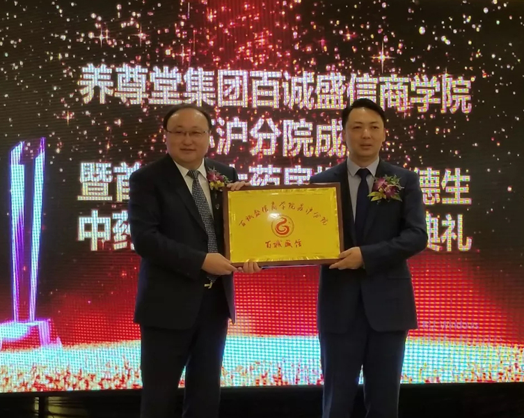 在新学院成立大典上,养尊堂总裁、百诚盛信商学院院长莫定龙现场聘请养尊堂苏沪分公司总经理莫羽周为分院院长,并特聘国大药房扬州大德生总经理孟玲龙为名誉院长!莫总表示,国大药房扬州大德生与养尊堂已经是多年的合作伙伴,自2016年11月合作以来,双方已通力开展了多次大型“中药养生文化节”活动,并取得了第一期223万、第二期243.7万,第三期284.7万、第四期290万的骄人战绩,双方的友谊如同节节攀升的业绩不断升华,恰似一杯陈年的老酒,越久越浓,香醇可口!
