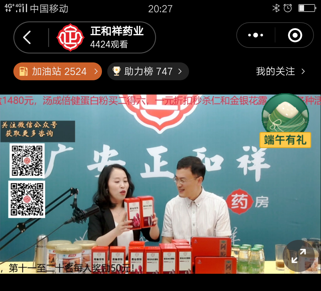 由于受到新冠疫情的影响,线上直播培训、直播卖货成为了当下最火爆的营销新法!6月18日,正和祥健康大药房广安分公司开展了一场精彩纷呈的“年中大促 全城狂欢”线上直播卖货,养尊堂副总裁范云杰先生做客直播间,与广安正和祥的家人们共同助力6.18电商节。